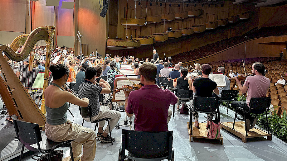 Seit unserem letzten Auftritt vor zwei Jahren im Sala Palatalui wurden einige akustische Verbesserungen vorgenommen. Intendantin Ilona Schmiel deutet auf die neu eingebauten Konzertmuscheln, die an den beiden Seitenwänden angebracht sind. Zusammen mit der Reduktion der Sitzplätze – 3000 statt 4000 – und dem hellen Bühnenboden, bewirke das eine «durchdringendere und klarere Akustik».
