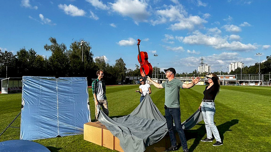 Es war ein sonniger Tag im vergangenen September, als eine kleine Crew aus dem Management-Team sich in Richtung Opfikon in Bewegung setzte. Das Ziel war erstens der Sportplatz Au – und zweitens ein Video-Clip für das tonhalleAIR, der so richtig schön leicht und luftig wirken sollte. Weisse Wolken vor blauem Himmel schwebten dem Team vor, und dazu Instrumente, die durch diesen Himmel flogen.