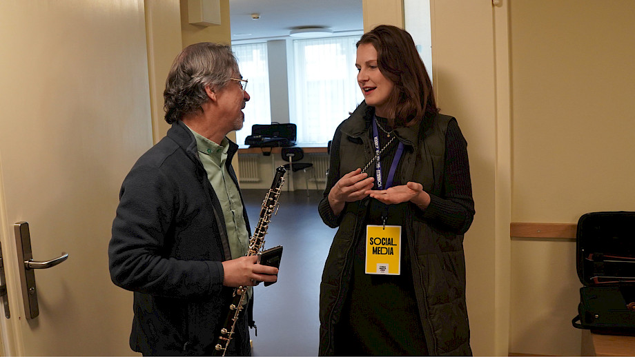 11:28 Im Gang treffen wir zufällig auf den Oboisten Isaac Duarte: «Danke nochmals für letzte Woche» – da hat seine Tochter Jannick (die übrigens Japanologie studiert hat und derzeit Portugiesisch lernt) über mehrsprachige Herausforderungen im Beruf interviewt.
