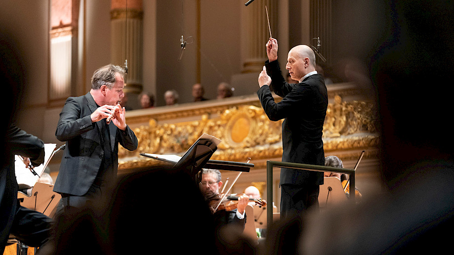 Am Anfang war da nur ein Windhauch aus Emmanuel Pahuds Flöte. Aber bald wurde das Publikum beim Saison-Eröffnungskonzert in der Grossen Tonhalle so richtig durchgepustet: Toshio Hosokawas Flötenkonzert «Ceremony», das an diesem Abend uraufgeführt wurde, steigerte sich vom reinen Atem zum mal meditativen, mal explosiven Fest der Klänge. Danach gab es Bruckners Sinfonie Nr. 8 – eines der längsten und monumentalsten Orchesterwerke der Musikgeschichte, das bei dieser Gelegenheit auch für unsere CD-Produktion aufgenommen wurde.
