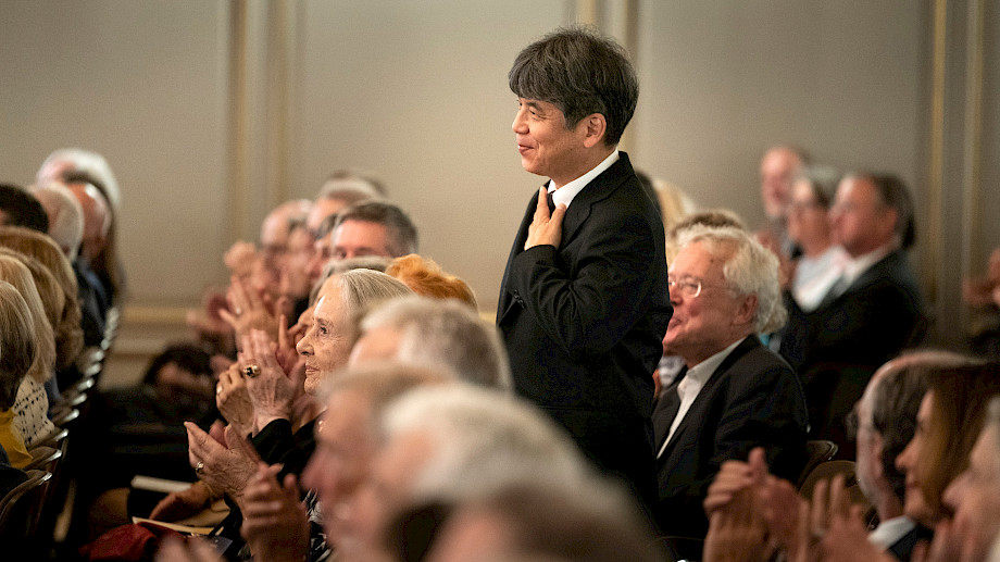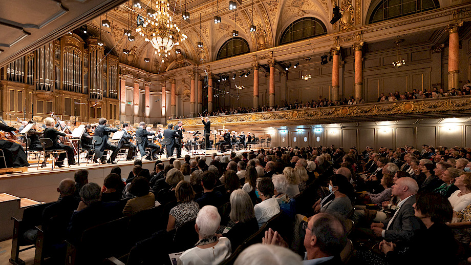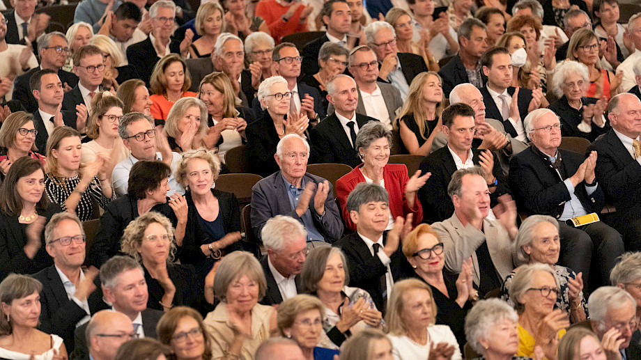 Als sozusagen stillen Protagonisten dieses Abends muss man noch den Saal erwähnen: Vor einem Jahr wurde er nach der Renovation wieder eingeweiht, nun konnten unsere Intendantin Ilona Schmiel und unser Präsident Martin Vollenwyder das Publikum bereits zum zweiten Saisonstart seit der Rückkehr an den See begrüssen. Und auch wenn der Glanz und die Farben inzwischen vertraut sind: Wie sich dieser Saal nach der Sommerpause wieder mit Musik und Applaus füllte – das wurde nach dem Konzert beim Schlummertrunk im Foyer und auf der Terrasse ausgiebig gefeiert.