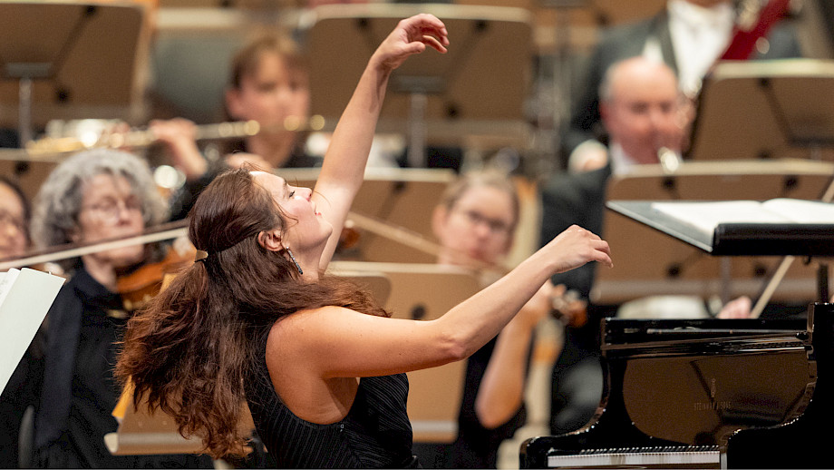 The concert opened with Robert Schumann's Piano Concerto in A minor op. 54, with Anna Vinnitskaya impressing the audience with her sensitive interpretation, which brought the depths of the work to life. The Tonhalle Orchestra Zurich, conducted by Paavo Järvi, accompanied her with precision and musical sensitivity, making the performance an intense experience. As an encore, Anna Vinnitskaya presented Mendelssohn's "Song without Words" No. 12 op. 30 (Venetian Gondola Song), which created a moment of calm and reflection with its gentle melancholy.