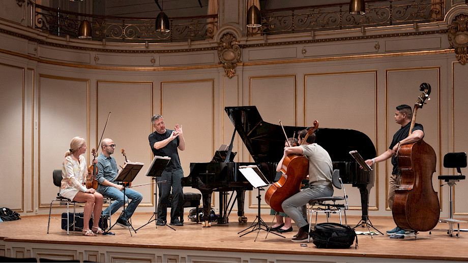 On the Sunday after the opening of the season, Thomas Adès performed once again in the Literature and Music series (together with actor Robert Hunger-Bühler) - not only as a composer, but also as a speaker and pianist. You can see how intensively he and our musicians prepared for this concert in this final photo gallery.
