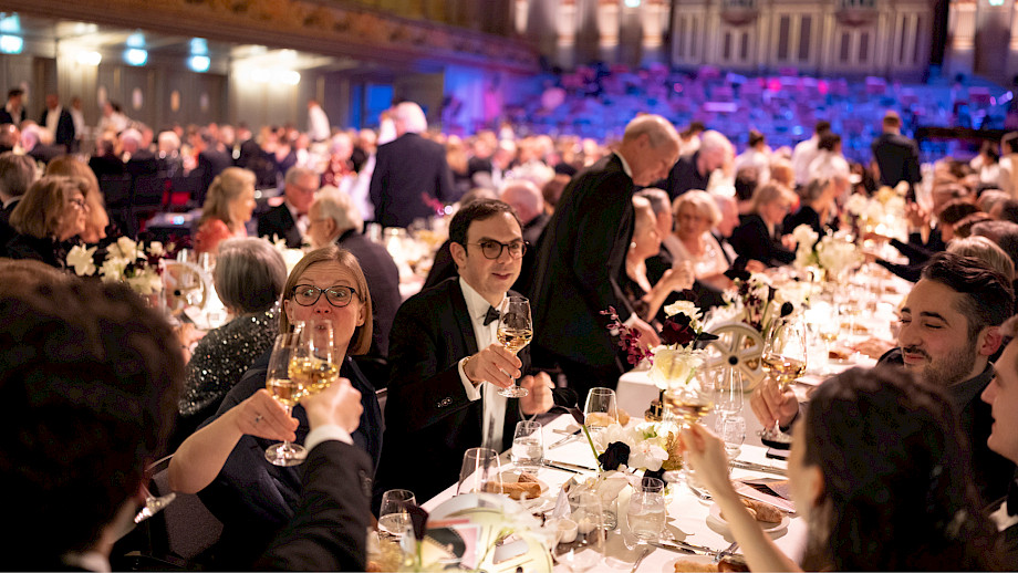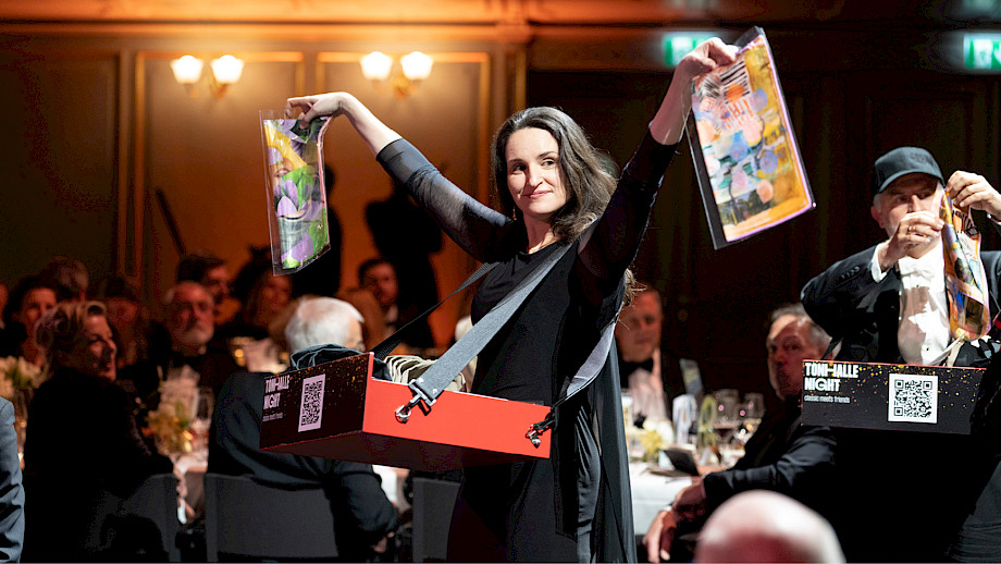 The large concert hall was also unrecognisable. The concert chairs had disappeared, replaced by long tables. Once again, the tables at this fundraising event organised by the Freundeskreis of the Tonhalle-Orchester Zürich featured voucher booklets with attractive offers: You could bid for house concerts or other encounters with musicians - or even order skis with our logo. The proceeds will benefit our Beethoven Festival 2027.
