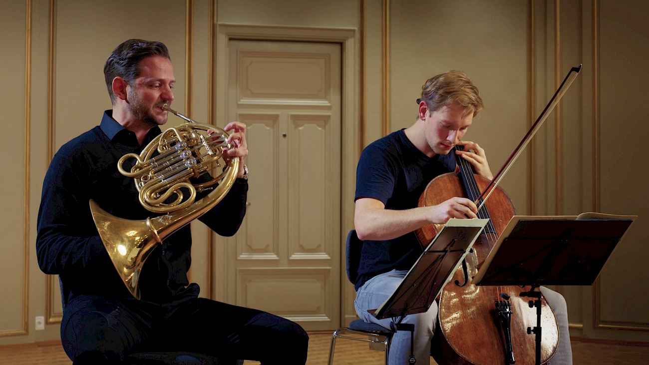 Our solo cellist Paul Handschke and solo horn player Ivo Gass play the famous opening motif for us.