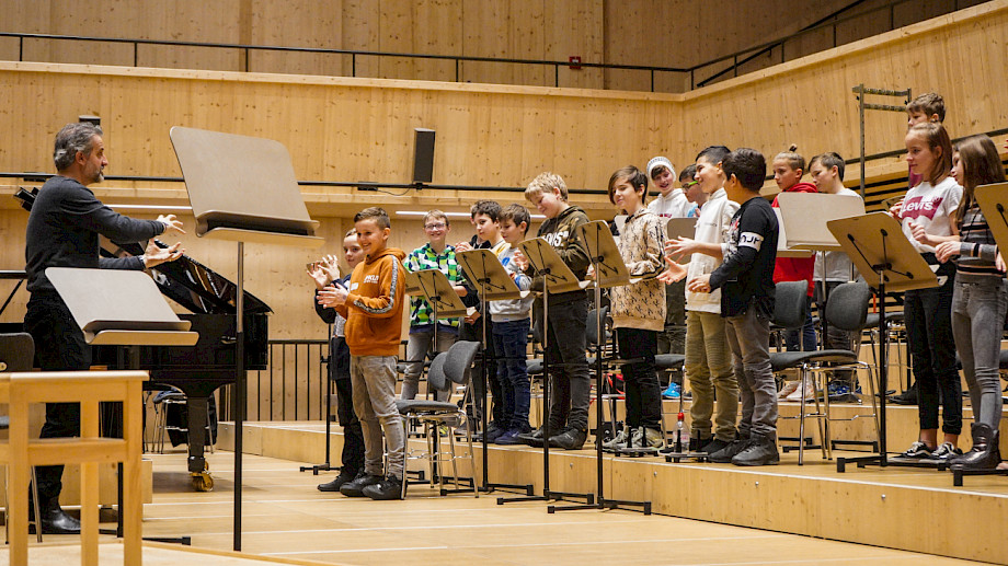 Der krönende Abschluss unseres Schulprojekts  «Mittendrin»: das gemeinsame Konzert, an dem ein Chor von rund 300 Schulkindern  gemeinsam mit dem Tonhalle-Orchester Zürich auftritt.