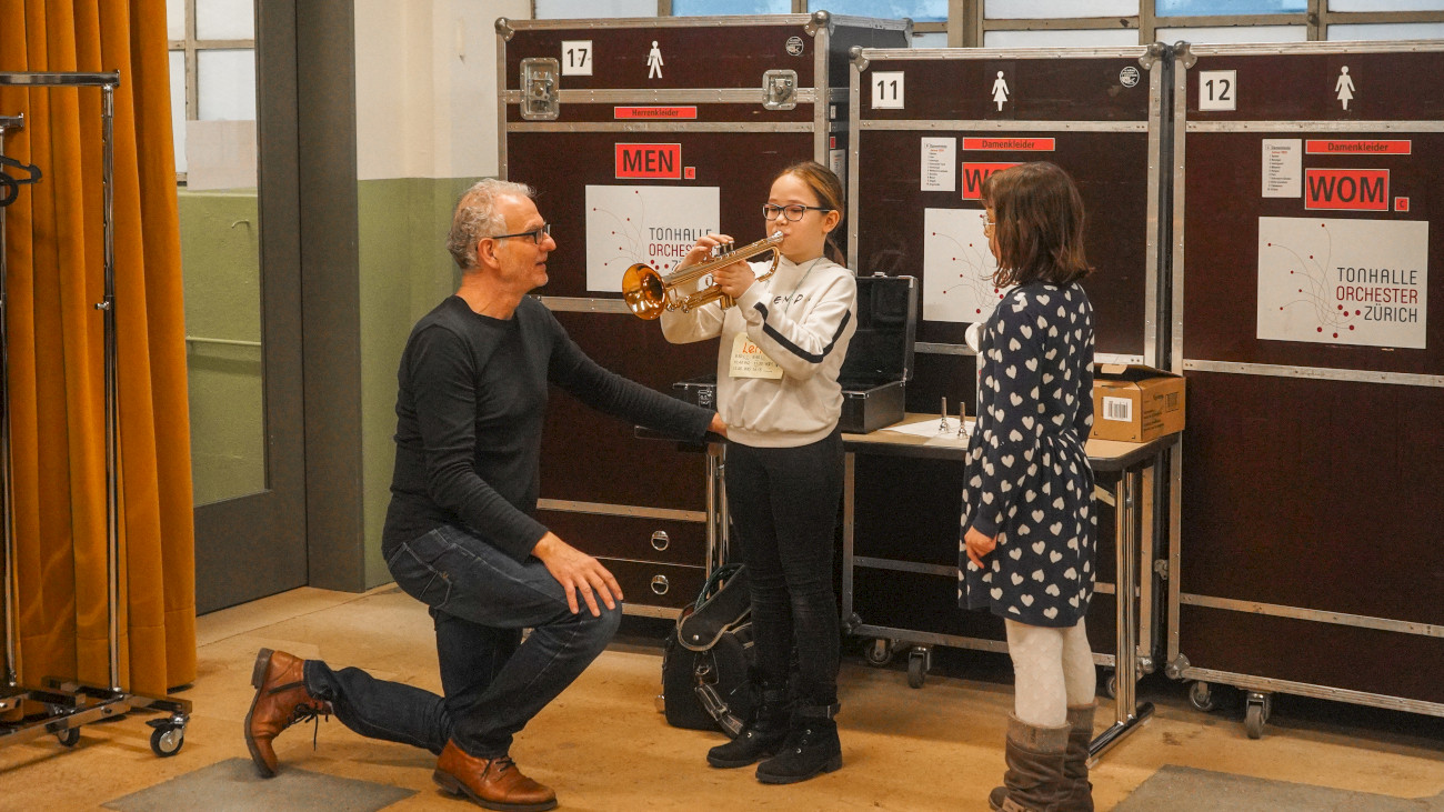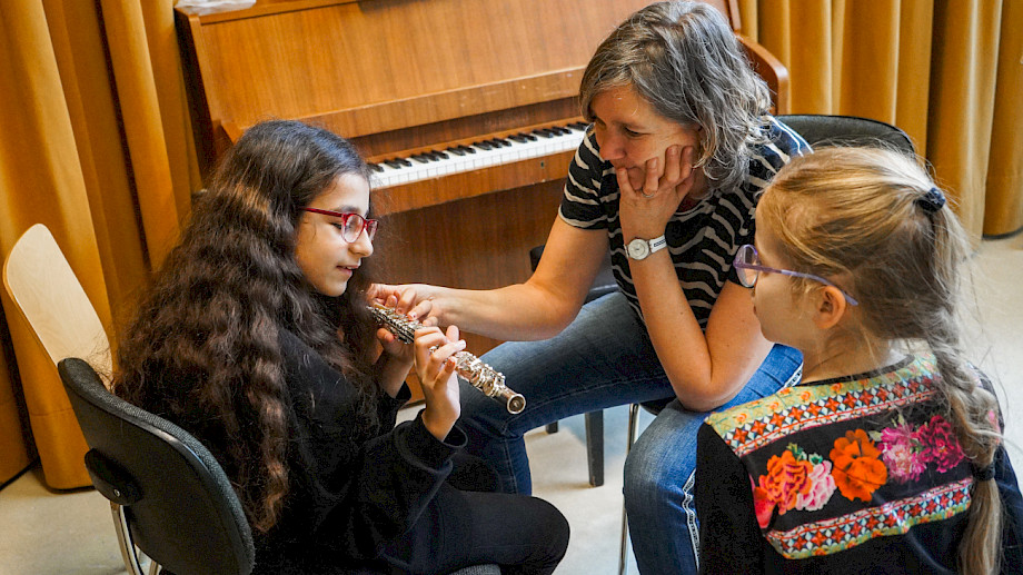 In den Tagen vor dem Konzert haben die Schulkinder fleissig gebrobt und verschiedene Instrumente unter Anleitung von Musiker*innen ausprobiert.