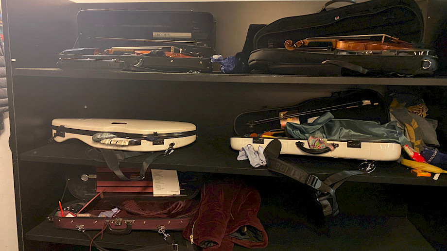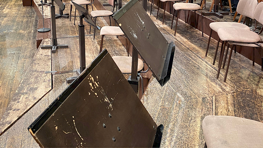 Ursula Sarnthein, Viola: The patina of the stage is really impressive. Generations of cellists have left their holes, but nothing has been sanded off – the countless small holes and dents have only been painted over. And the old wooden desks seem to have really fallen out of time – wobbly and bruised. The chairs have also seen better days ...