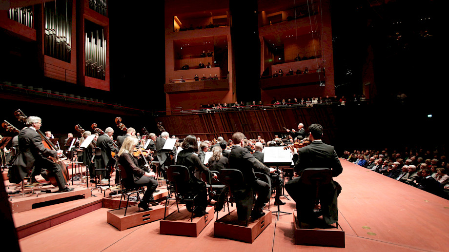 But first we are in Luxembourg. Our music director Paavo Järvi has been there dozens of times, he conducted the then RTL orchestra early on after starting his career in Scandinavia. Our soloist Antoine Tamestit has also been in this modern hall countless times. It was built in 2005, has 923 columns and three halls that can be played in parallel. With 400 concerts a year, 160 of which are for children and schools, it offers the only truly international programme between Saarbrücken and Metz. Many of the visitors therefore also come from nearby countries, if need be even with a specially organised shuttle. Everything in this house is therefore at least trilingual, with English even quadrilingual. This is quite an elaborate job for the marketing and communication team here.