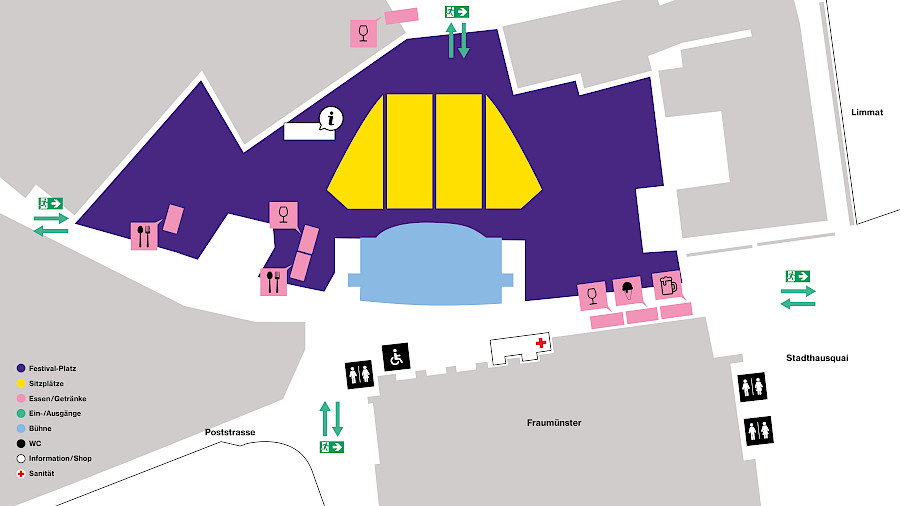 Es stehen begrenzt Sitzplätze zur Verfügung. Es herrscht freie Platzwahl und es gibt keine Möglichkeit, Sitzplätze vorab zu reservieren. Wir behalten uns vor, grossflächige Reservierungen mit Jacken oder ähnlichem wieder einzusammeln und beim Infopoint zur Abholung zu hinterlegen. Der Sitzplatzbereich öffnet jeweils eine Stunde vor dem Konzert.