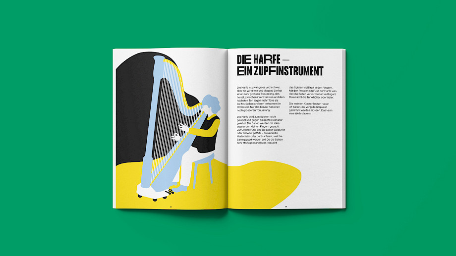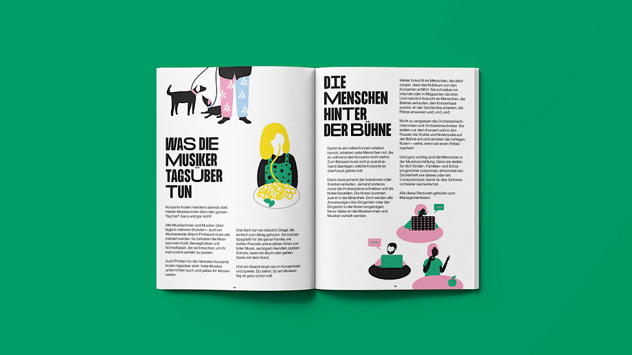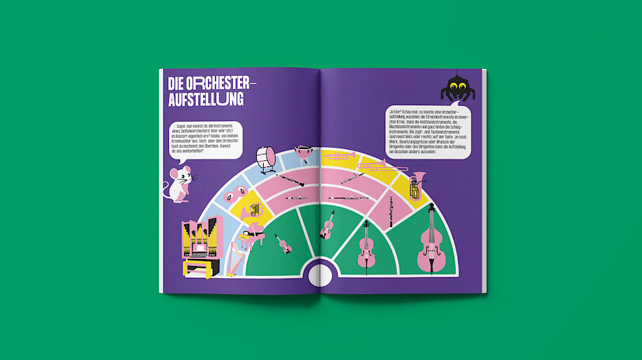 Das Stickerheft «Setz dich ins Orchester!» erklärt Kindern im Alter von 6 bis 9 Jahren die Geschichte des Sinfonieorchesters.
