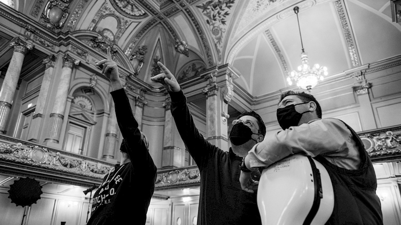 Noch vor dem grossen Umzug war das Orchester für erste Akustiktests zurück auf der Bühne in der Grossen Tonhalle. Nach fast vier Jahren sahen die Musiker*innen ihr neues altes Zuhause wieder, nach fast vier Jahren erklangen zum allerersten Mal wieder Orchesterklänge im Konzertsaal, der jetzt in allerschönstem Glanz erstrahlt.