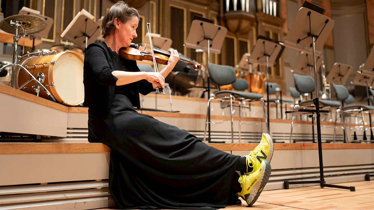Wenn das Orchester auch optisch einen überzeugenden Gesamtauftritt hat, dann ist das nicht zuletzt dem Einsatz eines Geige-Horn-Quartetts zu verdanken.