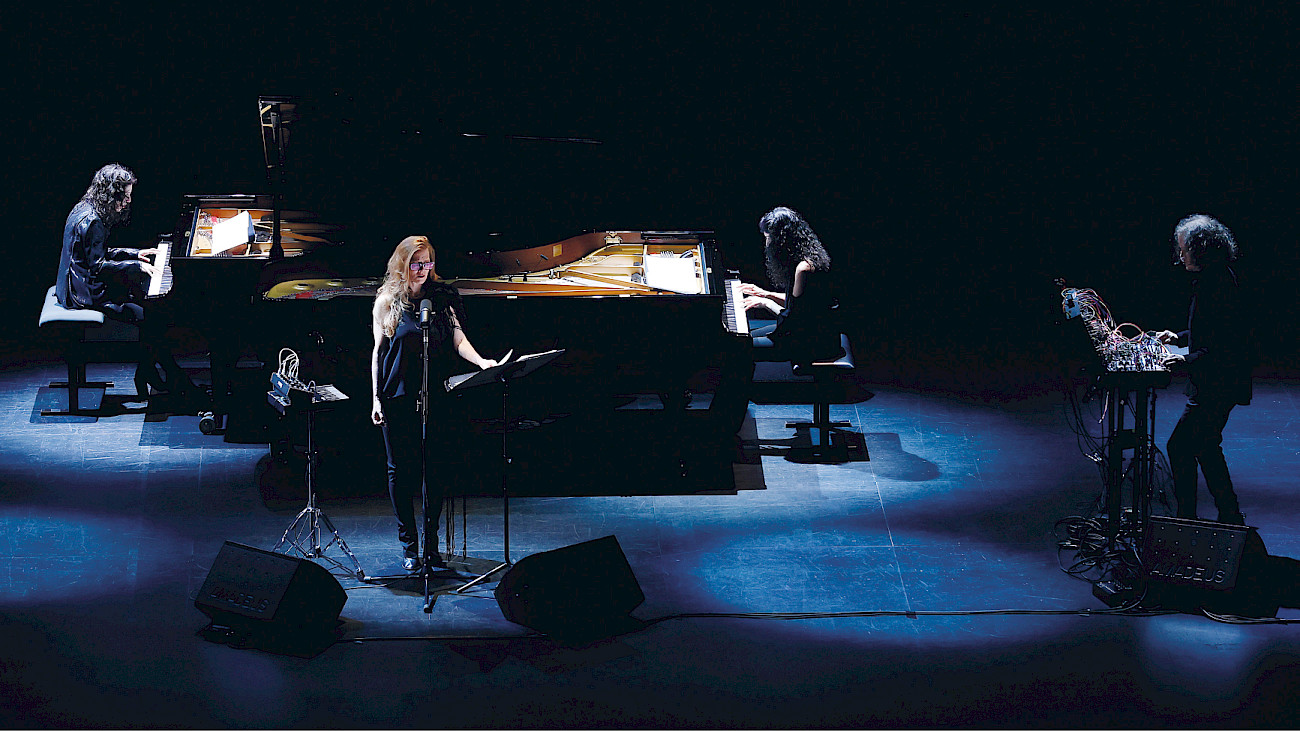 Ist es Zufall oder Kalkül, dass sich «Electric Fields» ausschliesslich um Frauen dreht? Die Frage geht an unseren Creative Chair Bryce Dessner. Weder noch, meint er: «Es ist Können.» Man denke doch oft nur an männliche Komponisten und scheue sich, die weiblichen genauer unter die Lupe zu nehmen. Dabei gibt es einige, die ein bedeutendes Erbe hinterlassen haben. So auch die drei, um die es in diesem Konzert geht. Und dann sind da die drei Interpretinnen, die Pianistinnen Katia und Marielle Labèque sowie die Sängerin Barbara Hannigan – für ihn die «Königinnen» der klassischen Musiker*innen. «Sie sind voller Energie, dynamisch, intelligent», so Dessner weiter. Die drei, für die er zusammen mit David Chalmin das Projekt «Electric Fields» konzipiert habe, seien «einfach genial»: wichtige und kraftvolle Künstlerinnen, die einiges in ihrem Leben bewegt haben.