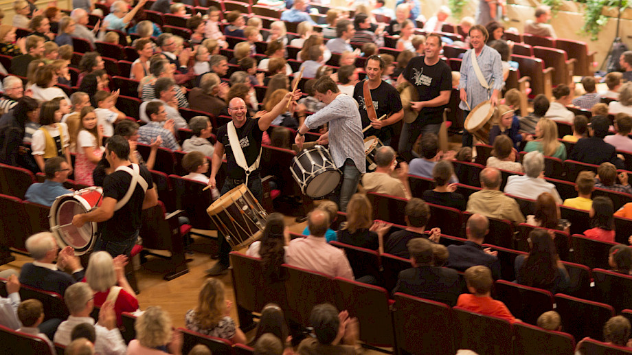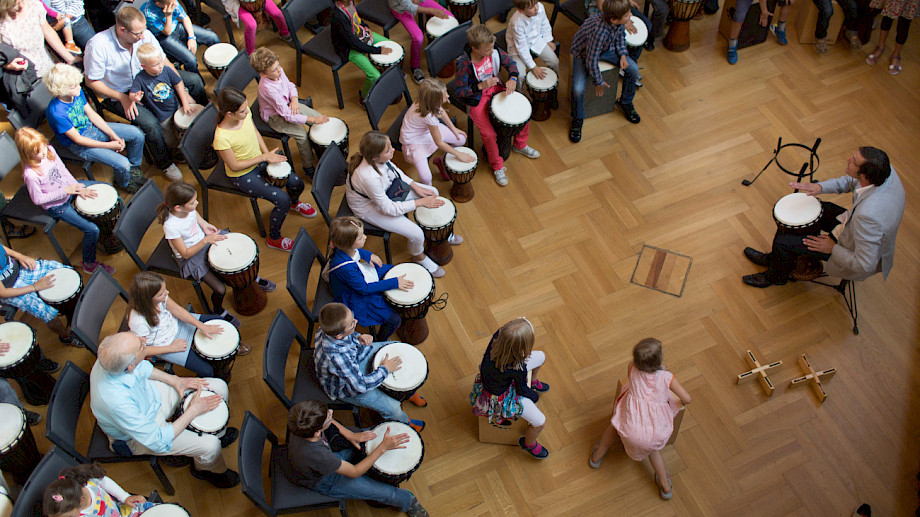 Und hast du Lust auch selbst mal den Rhythmus anzugeben? Dann komm doch einfach ab 10.30 bzw. 13.30 Uhr in die Kleine Tonhalle zu unserer Djembe-Session mit dem Workshop-Leiter Sven Quartier. Eine Anmeldung ist nicht nötig, komm einfach vorbei. Wir freuen uns auf dich und euch.