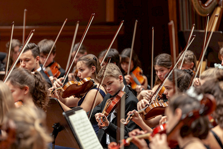 Für das Jugend Sinfonieorchester Zürich ist das Konzert in der Tonhalle Maag ein Höhepunkt der Saison. Mitglieder des Tonhalle-Orchesters Zürich proben mit den jungen Musiker*innen. Und unsere Schülermanager*innen setzen sich intensiv mit dem Programm auseinander und entwickeln gemeinsam die Dramaturgie des Abends, auch sie begleitet von «Göttis» und «Gotten» aus dem Orchester.