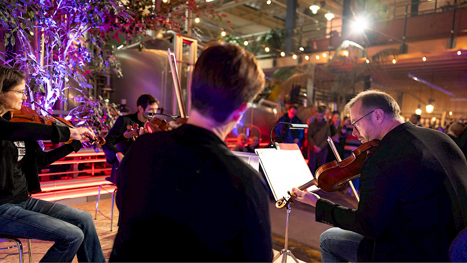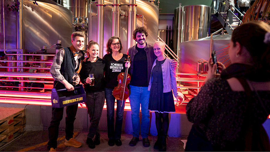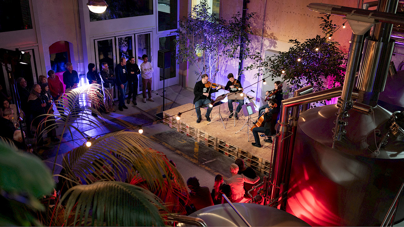 So versammelten sich denn am 13. November rund 200 Leute im Bierwerk Züri, um auf und mit Gustav anzustossen. Die Mit-Brauer*innen aus dem Orchester sorgten mit einem Streichquartett und einem Bläserquintett für musikalische Unterhaltung, die Pizza war fein, die Stimmung ausgelassen. Den Rest erzählen die Fotos.