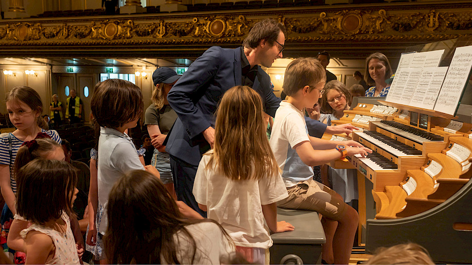 In einem Parcours erfahren Gross und Klein Wissenswertes und Kurioses. Was braucht es, bis so eine Orgel klingt? Was verändert sich, wenn man an ihr den einen oder den anderen Registerknopf drückt? Und wie kann man mit Händen und Füssen gleichzeitig spielen? In einer 3D-Aufnahme wird zu sehen sein, was während einer Aufführung im Innern des Instruments passiert. Dank unserer Orgel-Jukebox lässt sich das wunderbar miterleben. Ausserdem kann jede*r eine eigene Orgelpfeife basteln und für ein Quiz durch die Hinterräume der Tonhalle Zürich fegen.