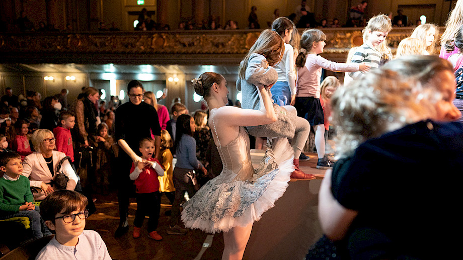 Auch sonst waren die Kinder in den beiden Familienkonzerten vom vergangenen Sonntag voll dabei. Sie zauberten mit, wenn Moderatorin Sara Taubman-Hildebrand sie dazu aufforderte. Sie bejubelten die Tänzer*innen in der Choreografie von Filipe Portugal. Sie applaudierten für die Musiker*innen, die ihre Instrumente vorführten, und für die Dirigentin Nil Venditti, die Tschaikowskys Musik zum Abheben brachte. Und sie wunderten sich höchstens ein bisschen, als der Tänzer Juan Sebastián Valdez, der eben noch die böse Fee Carabosse gegeben hatte, als schöner Prinz wieder auftauchte.