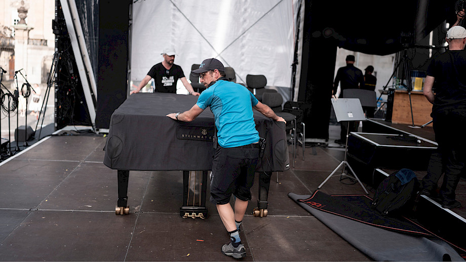 Vielleicht ist es Ihnen aufgefallen, dass die Stundenschläge der Kirchenglocken stets zwischen die Werke fielen. Das war kein Zufall, sondern Planung – das Timing mit Musik und Moderation war exakt darauf ausgerichtet. Auch sonst besteht so ein Festival aus unzähligen logistischen, technischen, kommunikativen, musikalischen und anderen Details. Seit rund einem Jahr hat das Team um Franziska Möhrle (Projektleitung), Friedemann Dürrschnabel (Orchestertechnik) und Michaela Braun (Produktion) sich in Zusammenarbeit mit externen Spezialist*innen auf diesen Anlass vorbereitet.