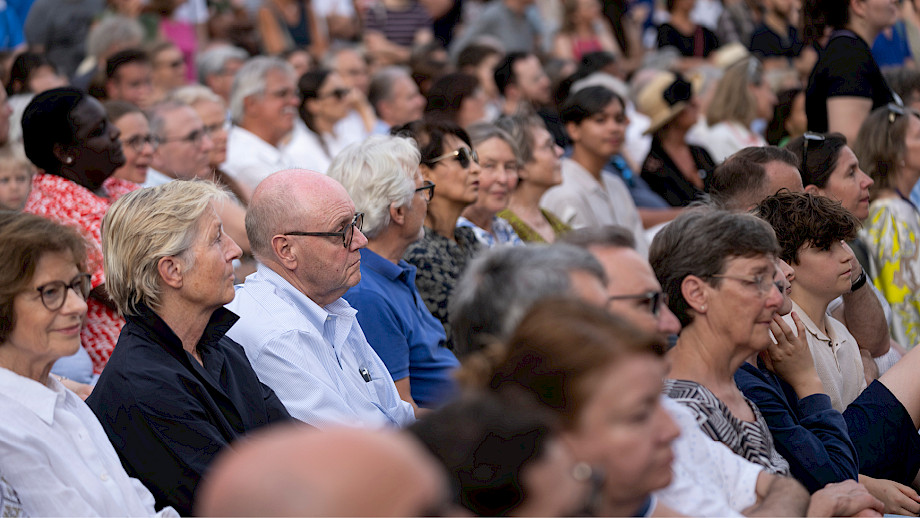 Auf dem Programm standen mit Griegs «Peer Gynt» Suite Nr. 1 und Dvořáks Sinfonie «Aus der Neuen Welt» zwei Repertoire-Hits, die so viel Publikum anlockten, dass die Security den Platz absperren mussten: Mehr als 3500 Menschen aufs Mal durften sich aus Sicherheitsgründen nicht auf dem Münsterhof versammeln. So hörten einige halt von ausserhalb der Absperrung her zu …