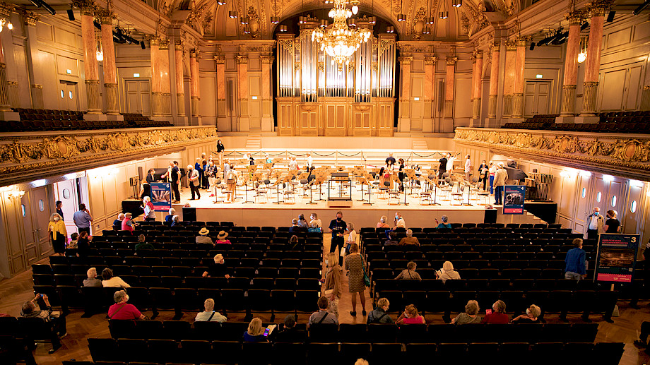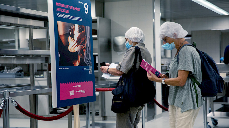 In einem Rundgang entlang des pinken Teppichs durften die Besucher*innen coronakonform selbstständig die Räumlichkeiten von Tonhalle und Kongresshaus Zürich erkunden. Mittels QR-Code aufrufbare Audioguides führten die Besucher*innen zurück in die Entstehungszeit der Tonhalle, gaben Einblick in die aufwändigen Renovationsarbeiten der letzten vier Jahre und lieferten spannende Hintergrundinformationen zu den Betrieben von Kongresshaus und Tonhalle Zürich.